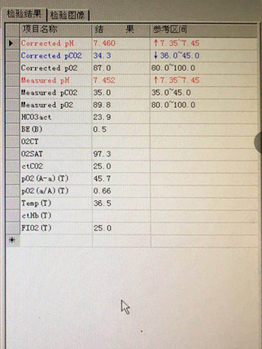 使用斯百瑞无创呼吸机辅助呼吸后复查血气分析结果:PH:7.46, PCO2 :34.3mmHg , PO2:87mmHg