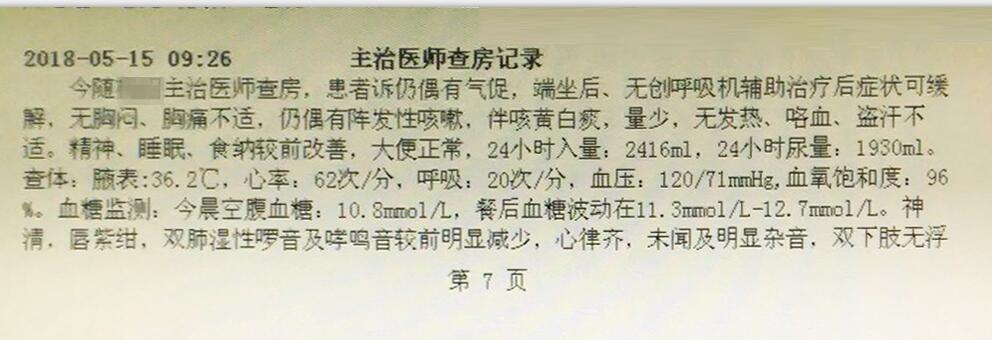 使用斯百瑞无创呼吸机有效后主治医生查房病志: